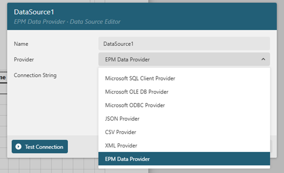 • EPM Data Provider: conector nativo (equivalente ao EPM OLE DB Provider) para acesso a dados históricos e em tempo real do EPM.